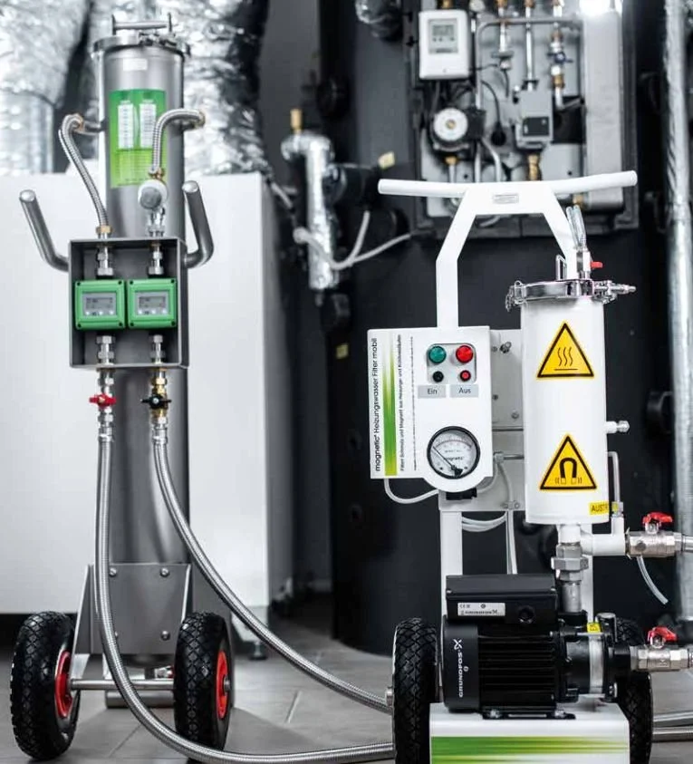 As the sludge comes loose, our magnetic filters capture all the tiny metal particles that would otherwise settle back in and cause future corrosion.